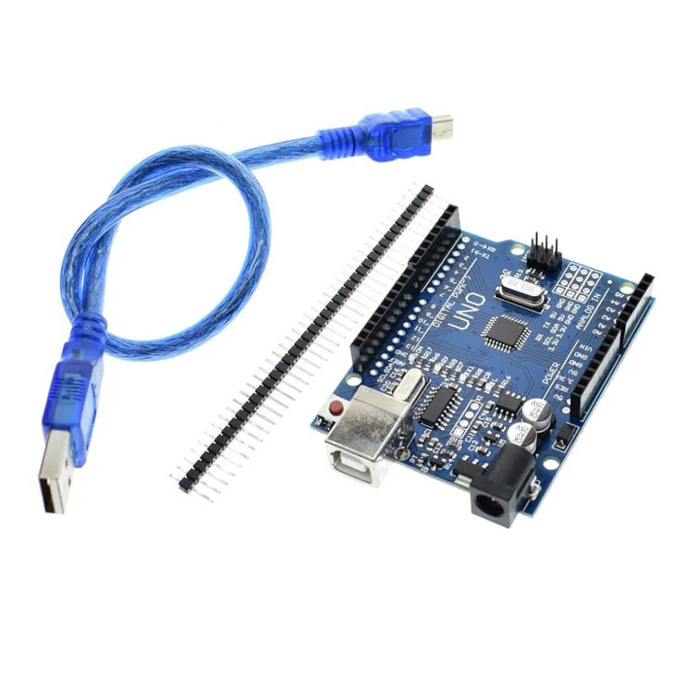 Плата Uno R3 (Arduino совместимая) - это платформа для моделирования и программирования роботов, электронных устройств. Стандартная плата Uno R3 оснащена всеми необходимыми разъемами для комфортной работы: 14 цифровых входов и выходов, порт USB для подключения к компьютеру, разъем для подключения питания. Набор для моделирования Ардуино подойдет начинающим робототехникам, так как является стандартным и простейшим для освоения. Набор для Arduino оснащен 32 Кб памяти для загрузки прошивки. Электроника для начинающих на базе Ардуино имеет открытую форму, поэтому ознакомиться с ней можно, скачав схему с официального сайта.